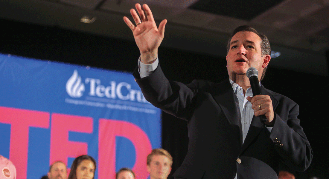 Featured Image: US Republican presidential candidate Ted Cruz addresses a rally at the Town and Country Resort and Convention Center on April 11, 2016 in San Diego, California. (Photo Credit: BILL WECHTER/AFP/Getty Images)