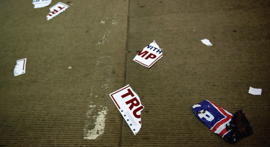 Featured Image: Remnants along Penn Avenue after Republican presidential candidate Donald Trump spoke to an audience at a rally at the David Lawrence Convention Center on April 13, 2016 in Pittsburgh, Pennsylvania. Pennsylvania will hold its primary election on April 26, 2016. (Photo by Jeff Swensen/Getty Images)