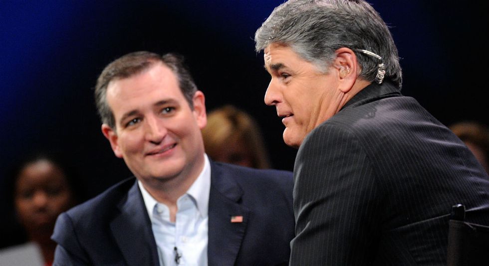 Featured Image: Republican presidential candidate Sen. Ted Cruz (R-TX) (L) speaks in a discussion with political commentator Sean Hannity during a campaign rally at Faith Assembly of God Church on March 11, 2016 in Orlando, Florida. The candidates continue to campaign before the March 15th Florida primary. (Photo by Gerardo Mora/Getty Images)
