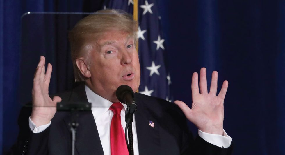 Featured Image: Using teleprompters, Republican presidential candidate Donald Trump delivers a speech about his vision for foreign policy at the Mayflower Hotel April 27, 2016 in Washington, DC. A real estate billionaire and reality television star, Trump beat his GOP challengers by double digits in Tuesday's presidential primaries in Pennsylvania, Maryland, Deleware, Rhode Island and Connecticut. 'I consider myself the presumptive nominee, absolutely,' Trump told supporters at the Trump Tower following yesterday's wins. (Photo by Chip Somodevilla/Getty Images)