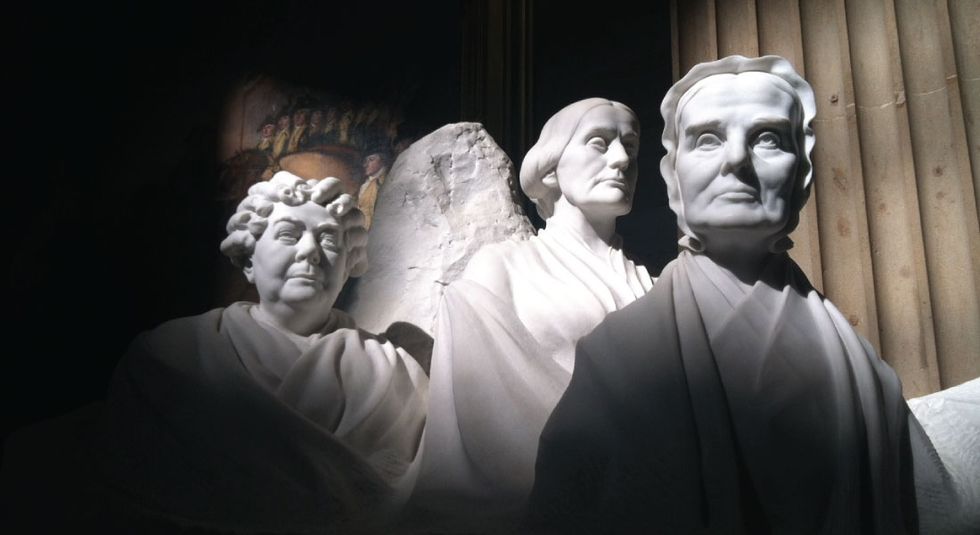 Featured Image: Statues of US pioneers for women's suffrage, Elizabeth Cady Stanton (L), Susan B. Anthony (C), and Lucretia Mott (R) are seen Septembder 30, 2013 in the US Capitol Rotunda in Washington, DC. Women's suffrage in the United States was achieved gradually, at state and local levels during the late 19th century and early 20th century, culminating in 1920 with the passage of the Nineteenth Amendment to the United States Constitution, which provided: 'The right of citizens of the United States to vote shall not be denied or abridged by the United States or by any State on account of sex.' (Photo Credit: MICHAEL MATHES/AFP/Getty Images)