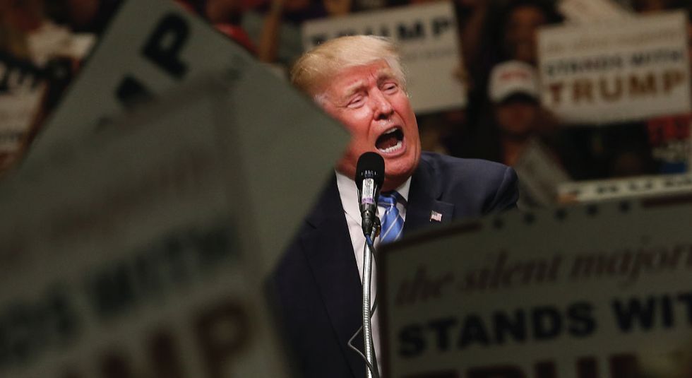 Featured Image: Republican presidential candidate Donald Trump speaks at a rally on May 25, 2016 in Anaheim, California. The presumptive Republican presidential candidate is on a Western campaign swing. A rally in Albuquerque, New Mexico turned violent on Tuesday, leading to at least one arrest and several injuries, police say. (Photo by Spencer Platt/Getty Images)