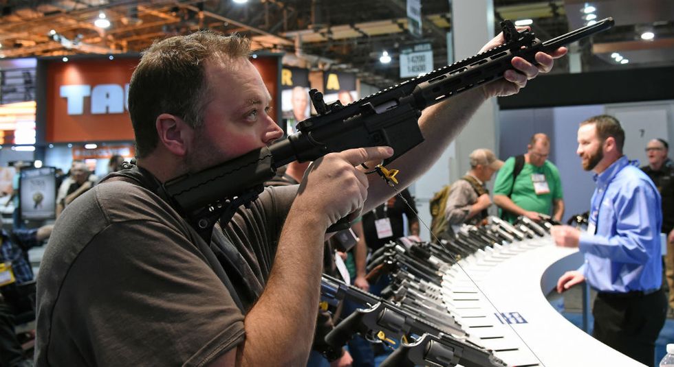 Featured Image: Tyler Burton tries out an M&P 15-22 Sport rifle at the Smith & Wesson booth at the 2016 National Shooting Sports Foundation's Shooting, Hunting, Outdoor Trade (SHOT) Show at the Sands Expo and Convention Center on January 19, 2016 in Las Vegas, Nevada. (Photo by Ethan Miller/Getty Images)