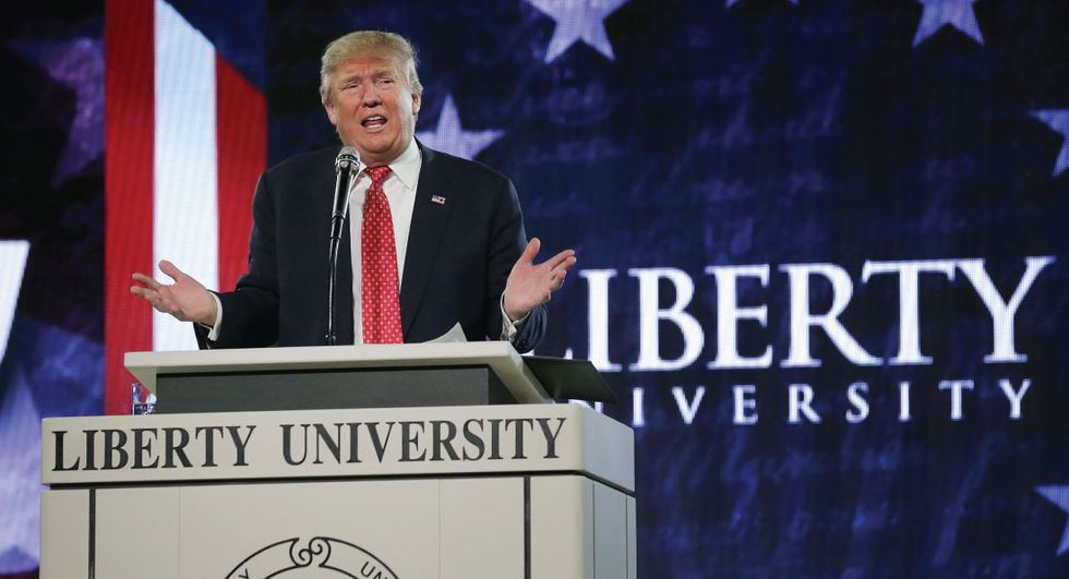 Featured Image: Republican presidential candidate Donald Trump delivers the convocation at the Vines Center on the campus of Liberty University January 18, 2016 in Lynchburg, Virginia. A billionaire real estate mogul and reality television personality, Trump addressed students and guests at the non-profit, private Christian university that was founded in 1971 by evangelical Southern Baptist televangelist Jerry Falwell. (Photo by Chip Somodevilla/Getty Images)