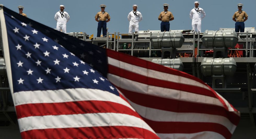 Featured Image: The US Flag blows in the wind as Sailors and Marines stand on the deck of the USS Bataan (LHD 5) as it arrives into Pier 88 during the 'Parade of Ships' ceremony to kick off Fleet Week in New York on May 25, 2016. (Photo by TIMOTHY A. CLARY/AFP/Getty Images)
