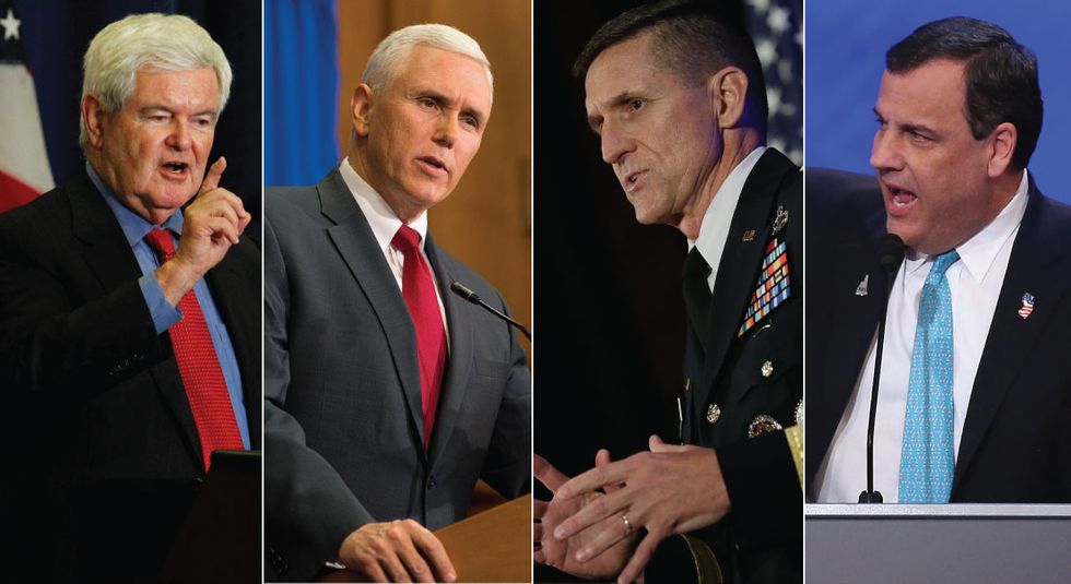 Featured Image: (L to R) Former Speaker of the House Newt Gingrich (Photo by John Sommers II/Getty Images); Indiana Gov. Mike Pence (Photo by Aaron P. Bernstein/Getty Images); New Jersey Governor Chris Christie (Photo by Joe Raedle/Getty Images); Lt. Gen. Michael Flynn (Photo by Win McNamee/Getty Images)