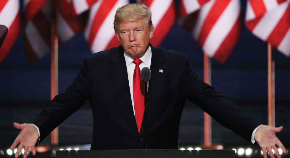 Featured Image: Republican presidential candidate Donald Trump delivers a speech during the evening session on the fourth day of the Republican National Convention on July 21, 2016 at the Quicken Loans Arena in Cleveland, Ohio. Republican presidential candidate Donald Trump received the number of votes needed to secure the party's nomination. An estimated 50,000 people are expected in Cleveland, including hundreds of protesters and members of the media. The four-day Republican National Convention kicked off on July 18. (Photo by Alex Wong/Getty Images)