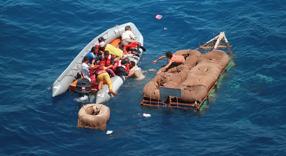Featured Image: US coast guards scramble to rescue a group of Cuban refugees after their raft capsized some 25 miles off the coast of Cuba 31 August 1994 in the Florida Straits. The numbers of Cuban boat-people refugees increased in the summer of 1994 in spite of Bill Clinton's warning that Cubans are no longer welcome in the US . (Photo Credit: DOUG COLLIER/AFP/Getty Images)