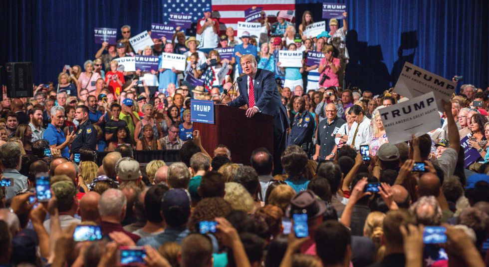Featured Image: Republican Presidential candidate Donald Trump addresses supporters during a political rally at the Phoenix Convention Center on July 11, 2015 in Phoenix, Arizona. Trump spoke about illegal immigration and other topics in front of an estimated crowd of 4,200. (Photo by Charlie Leight/Getty Images)