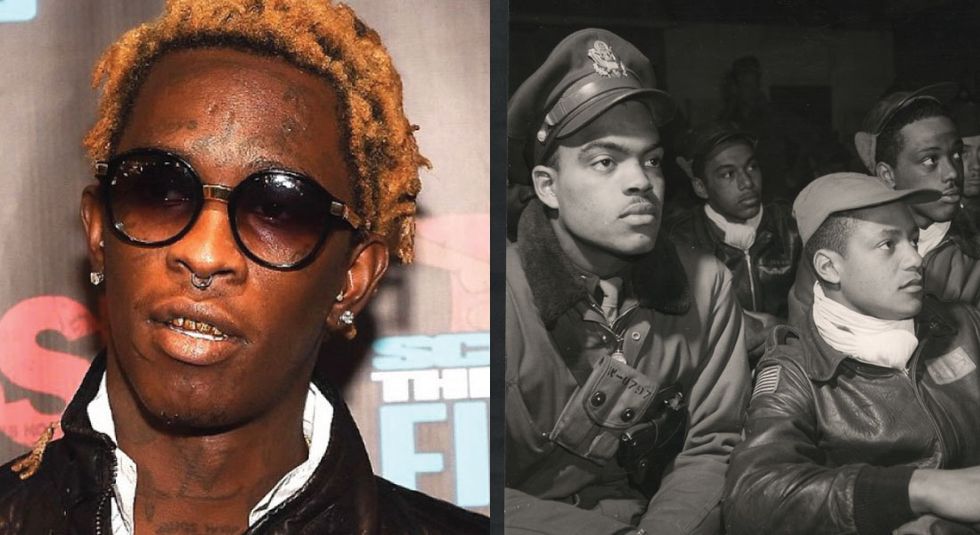 Featured Image: (L to R) Rapper Young Thug, alternately known as No, My Name is Jeffery or Jeffery (Photo Credit: Black Entertainment Television); Members of the 332nd Fighter Group attending a briefing in Ramitelli, Italy, March, 1945. (Photo Credit: Toni Frissell Collection, Library of Congress)
