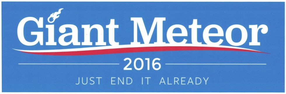 The left-leaning Public Policy Polling (PPP) offered the hypothetical "Giant Meteor" option in its latest survey. Forty-three percent picked Clinton, 38 percent picked Trump and 13 percent picked the Giant Meteor hitting earth. Another 7 percent were unsure.