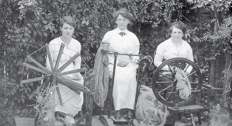 Featured Image: Photograph of three women spinning wool to knit socks for soldiers during World War I, circa 1915. (Wiki Commons)