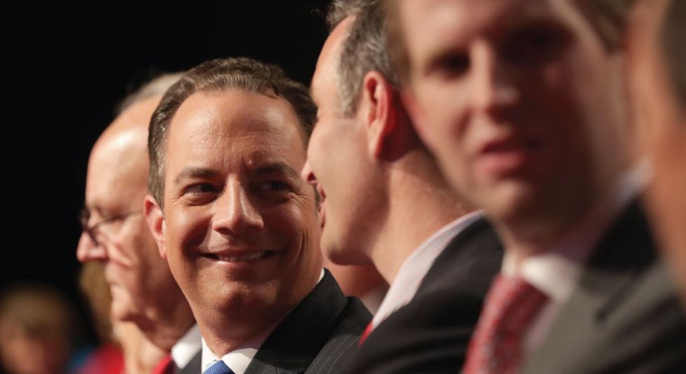 Featured Image: Reince Priebus, chairman of the Republican National Committee attends the Vice Presidential Debate between Democratic vice presidential nominee Tim Kaine and Republican vice presidential nominee Mike Pence at Longwood University on October 4, 2016 in Farmville, Virginia. This is the second of four debates during the presidential election season and the only debate between the vice presidential candidates. (Photo by Chip Somodevilla/Getty Images)