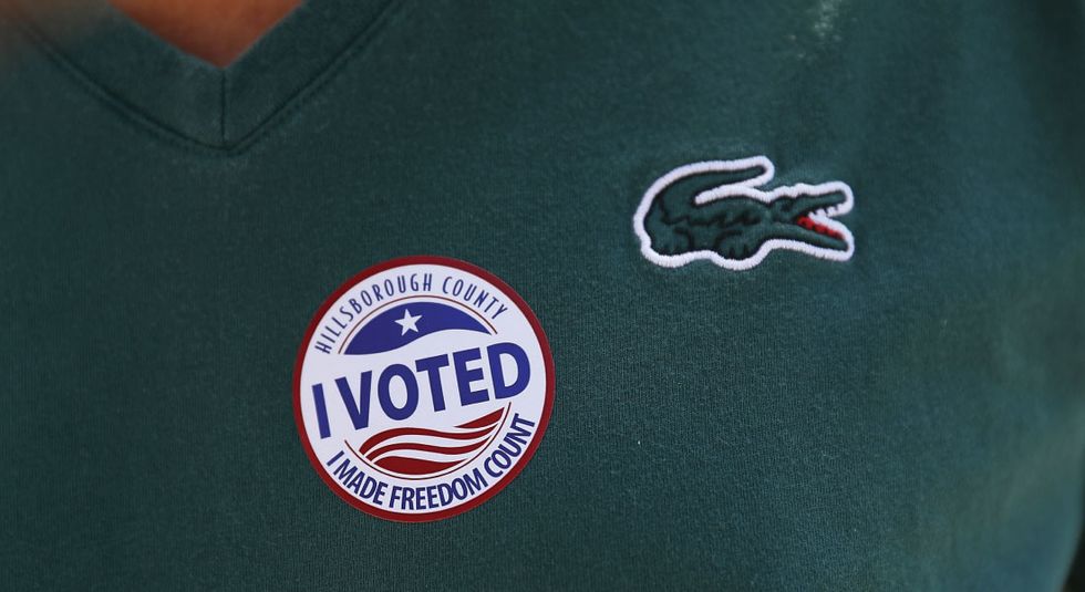 Featured Image: A voter wears a I Voted sticker as he leaves a polling station at the Hillsbourgh County Supervisor of Elections office after early voting on October 24, 2016 in St. Petersburg, Florida. Today early general election voting started in the state of Florida and ends on either Nov 5 or Nov 6th. (Photo by Joe Raedle/Getty Images)