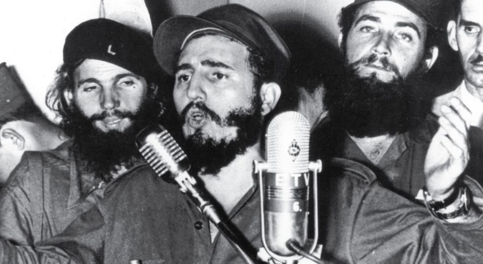 Featured Image: Cuban revolutionary Fidel Castro during an address in Cuba after Batista was forced to flee. (Photo by Keystone/Getty Images)