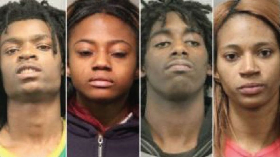 Four people are under arrest. They're four black apparently teens. Under arrest. In Chicago. For taking, apparently, a handicapped man, a man who has some mental deficiencies, kidnapping him, bringing them to their house, taping his mouth, torturing him, and beating him, all live on Facebook.
