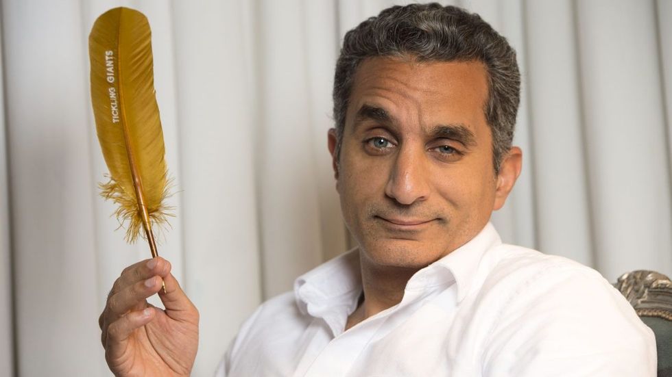 BASSEM: Yeah. It's very chaotic. I chose comedy and satire to go through with it. Which is very difficult. Because we happened to write comedy where things were basically falling apart outside, especially threats -- I mean, like there were people -- I was put under siege in my theater, writing my show. And I was put under siege by people who were supporters by the military, not the Islamists.
