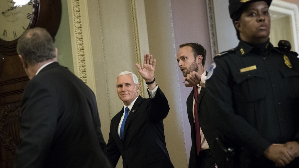 GLENN: Okay. So let's talk a little bit about Mike Pence. Because I think this kind of fits into your -- the way you look at Mike Pence. And that is, he's there because he believes that God works in mysterious ways. And maybe he's just supposed to stand up at some point if the president falls down.