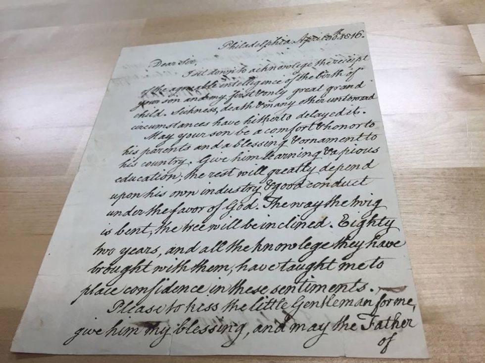 I sit down to acknowledge the receipt of the agreeable intelligence of the birth of your son, and my first and only great grandchild. Sickness, death and many other untoward circumstances have hitherto delayed it.