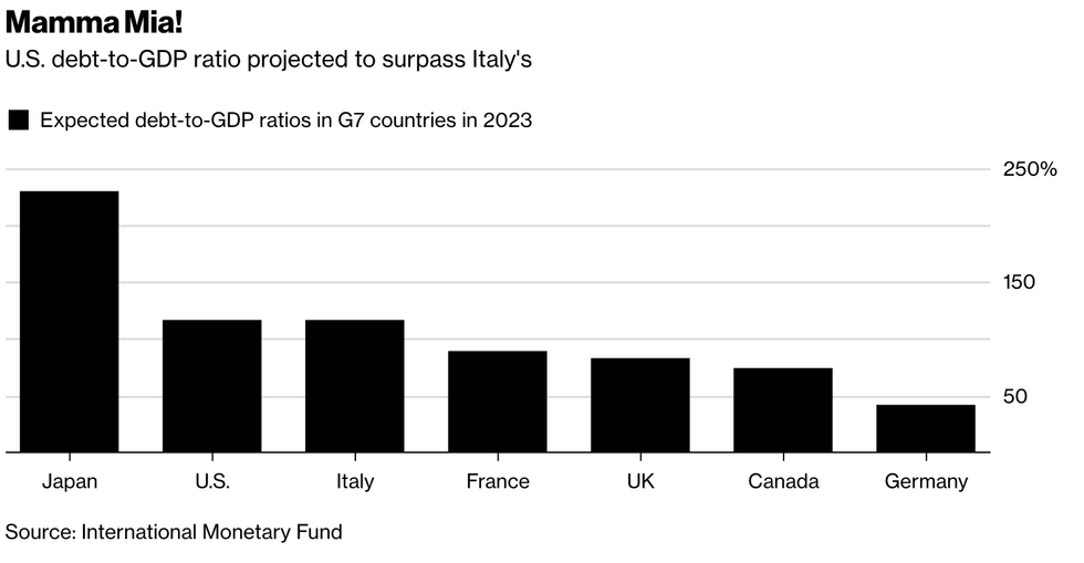 U.S. Debt Load Seen Worse Than Italy's by 2023, IMF Predicts (Bloomberg)