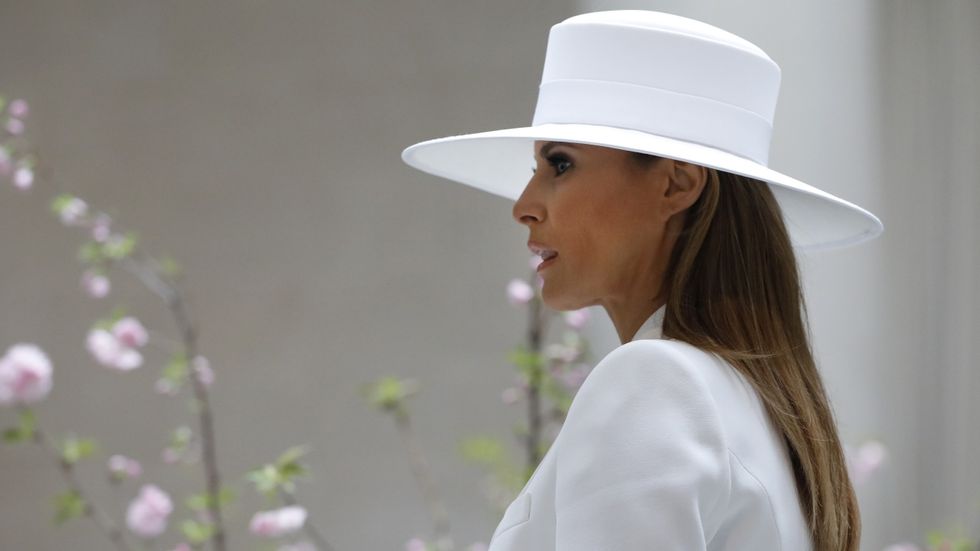 Breaking news from the Associated Press, the news organization that has garnered 52 Pulitzer prizes, America's primary news source, the news platform that nearly all other news networks get their news and reporting information from. Very important, breaking news. Headline: “First lady Melania Trump greets the Macrons with a hat."