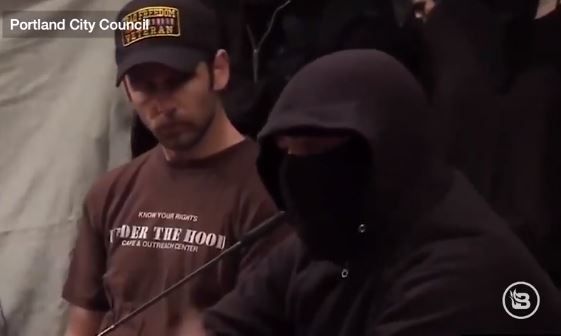 "Go f*** yourself, Mayor Wheeler," the masked man said in closing to his anti-capitalist rant.