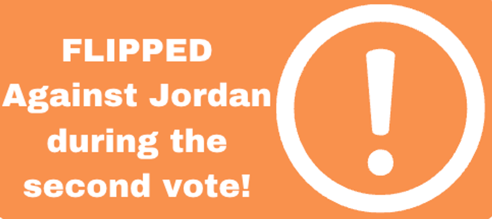 Jordan needs a minimum of 217 votes to become Speaker of the House. Below you will find the COMPLETE list of ALL 20 House Republicans who voted against Jordan. Now's the time to contact your representative and demand they back Jordan in tomorrow's vote.