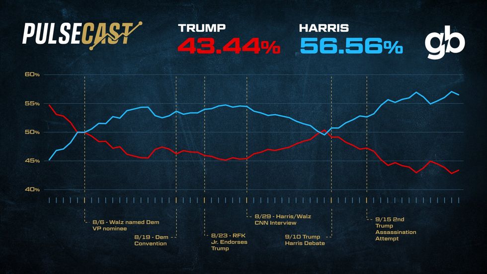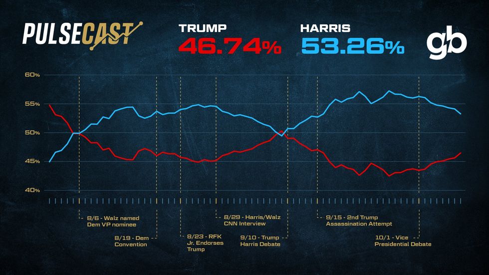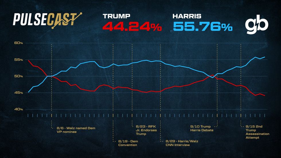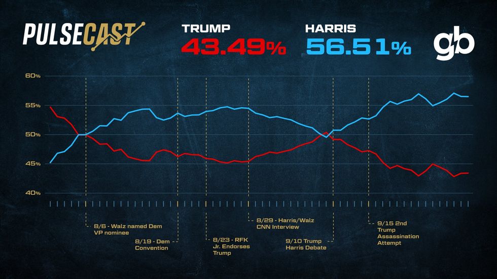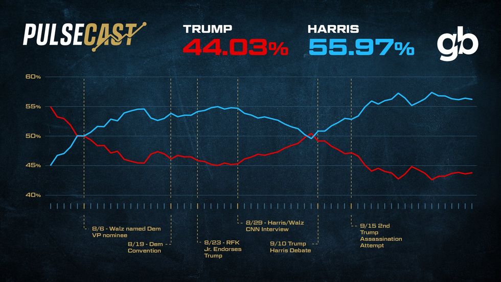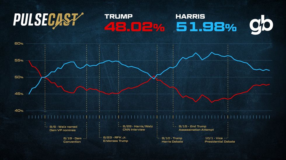 Stu and his team of fellow political wizzes created the Pulsecast in tandem with the Glenn Beck Program, a comprehensive view of national sentiment towards Donald Trump and Kamala Harris heading into November. They gather data from all major election polls so that you don't have to sift through individual polls to get the big picture of what's going on.