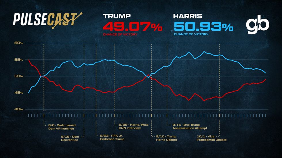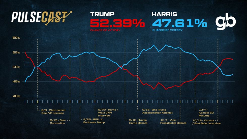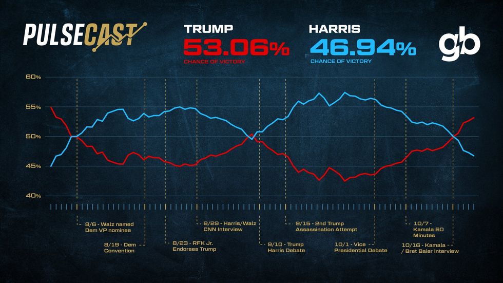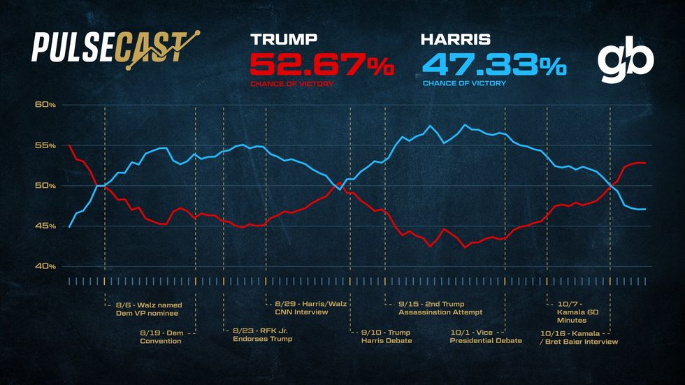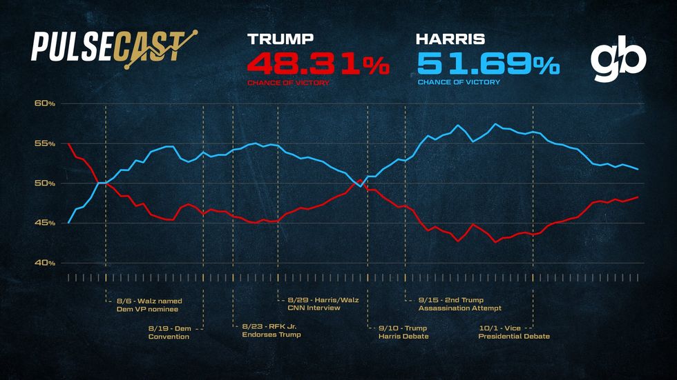 REMINDER: The PULSECAST attempts to put a finger on the pulse of what mainstream pollsters and data nerds are saying. It is not Glenn or Stu’s election prediction. Read more detail here.