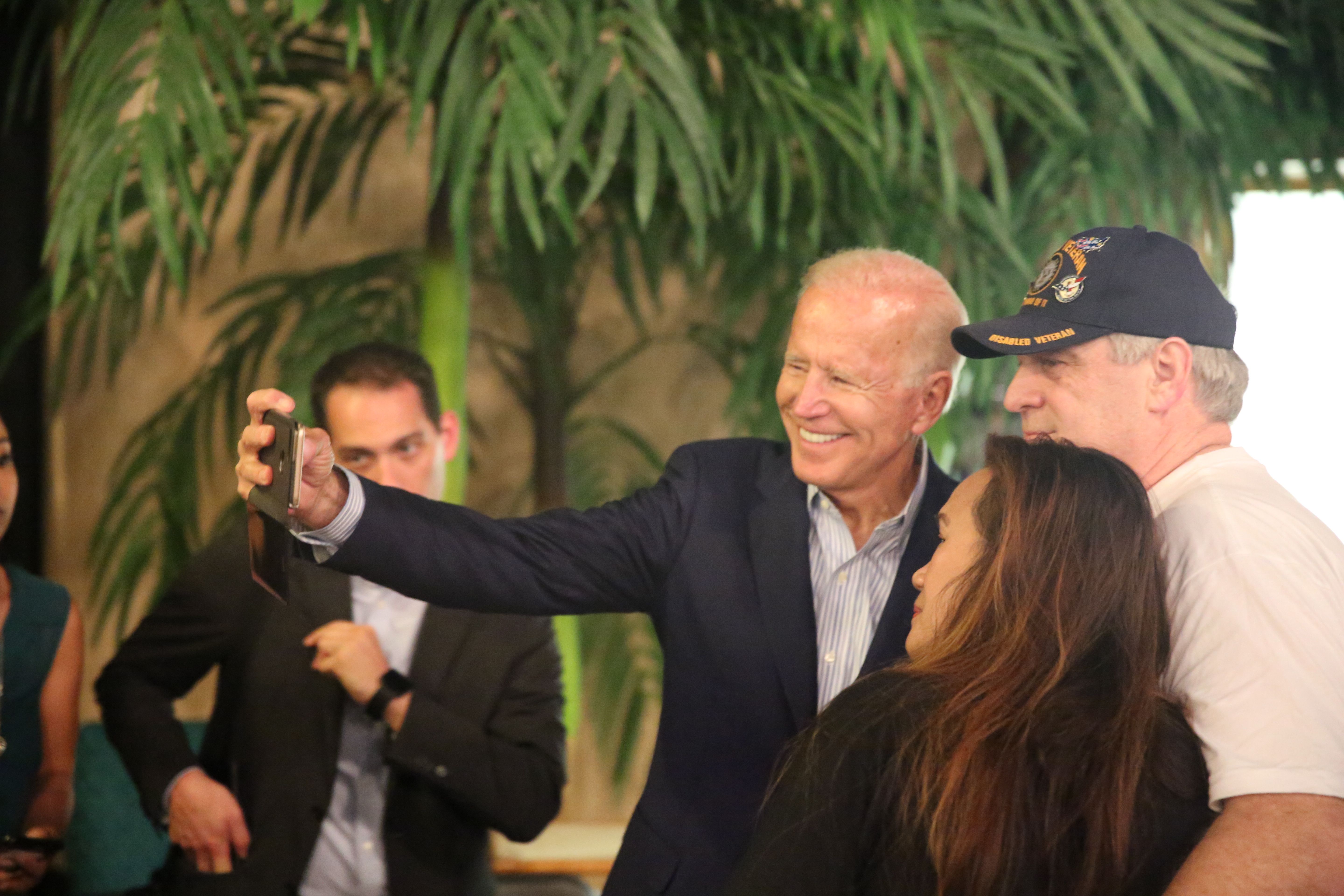 Chaos. Wild. Wild! The place erupted as Elizabeth Warren strutted offstage. At the bottom of the stairs, Joe Biden shifted from foot to foot, surrounded by a small entourage, all wearing "Biden 2020" t-shirts.