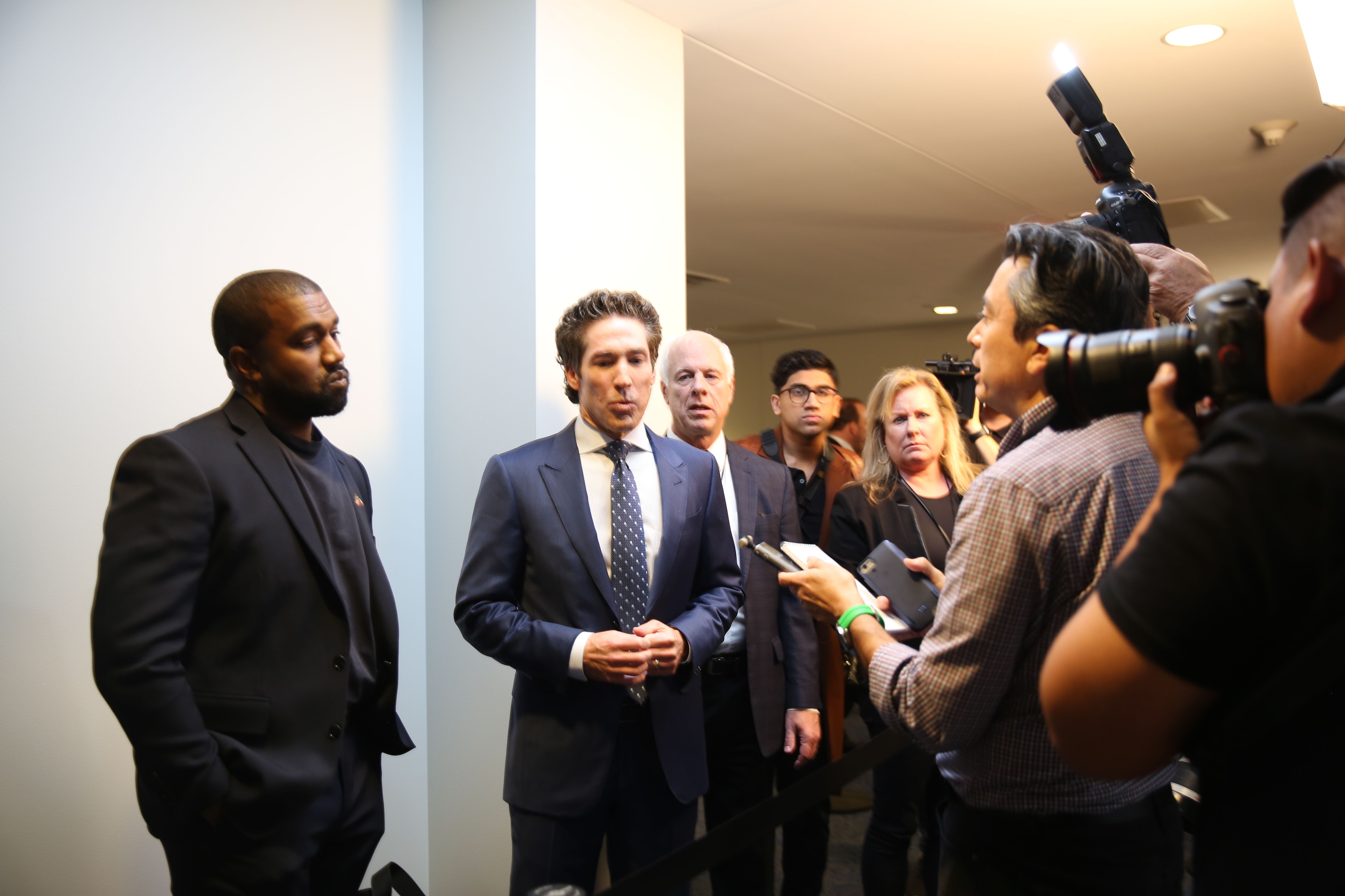 As Kanye and Olsteen shuffled away, down the line of journalists, I said hello to a small crew from FoxNews as they packed their equipment.