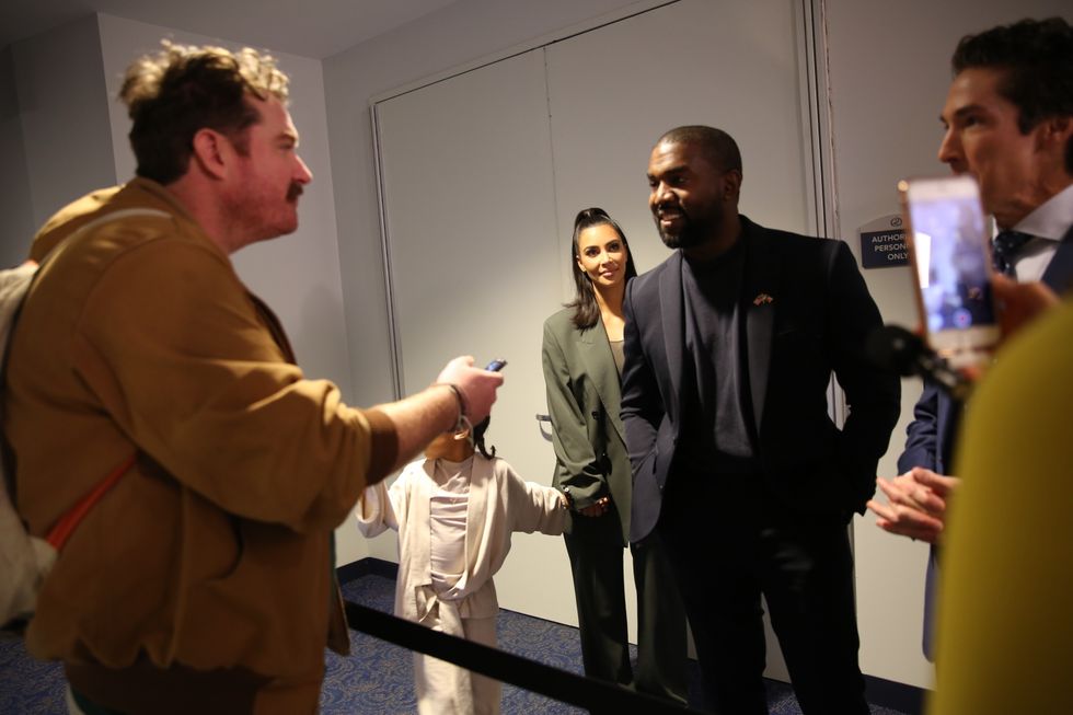 Then, Kim Kardashian-West was walking our way, holding her daughter's hand, followed by Kanye, who was followed by Osteen.