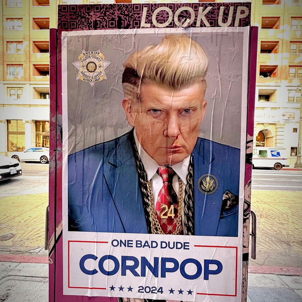 This theme is perfectly exemplified in this particular stop sign piece in which Sabo captures one of the more infamous moments when Joe Biden displayed questionable behavior towards minors. Sabo remarked how he had wanted to do a stop sign piece for years because they are, in his words, "so in your face." The perfect opportunity arose when he came across the viral clip of Joe Biden sniffing the hair of the young girl depicted in the poster. He said:
