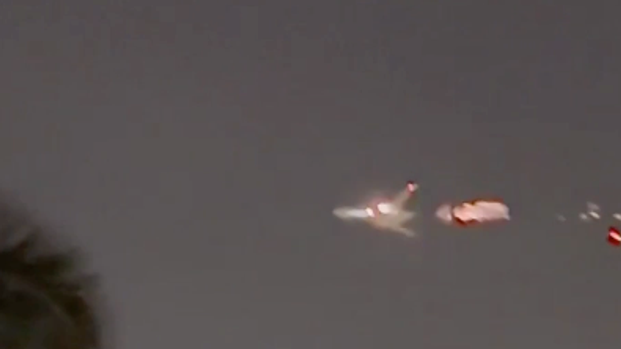 A Boeing 747-8 cargo plane made an emergency landing at the Miami International Airport due to an engine failure. Videos on social media show the plane's engine engulfed in flames during its emergency landing.