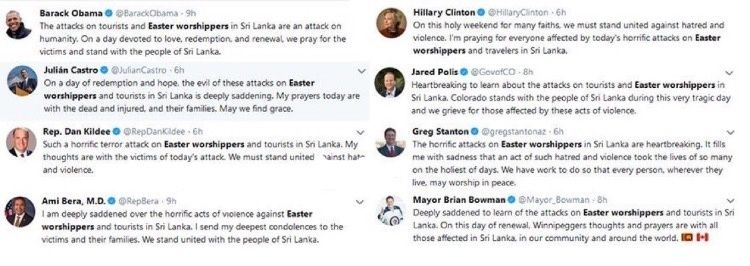 After the horrific Pittsburgh Synagogue and New Zealand Mosque shootings, Democrats rightfully acknowledged the disturbing trend of targeted attacks against Jews and Muslims. But some of these same politicians refer to the Sri Lanka bombings with careless ambiguity.