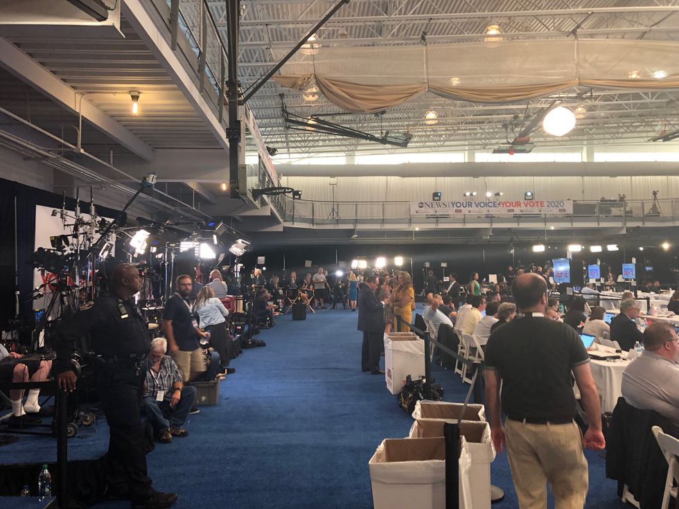 Most people arrived in the Media Filing Center several hours before the debate. Fox News got there just slightly after that, as everyone was wiggling in their seats and connecting their laptops to a shared outlet.