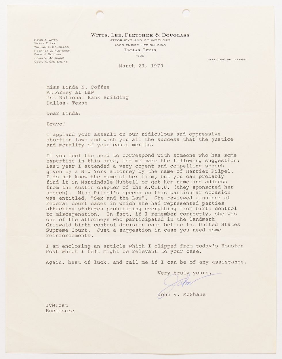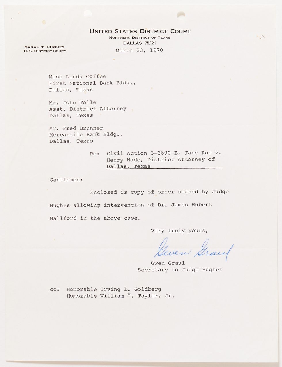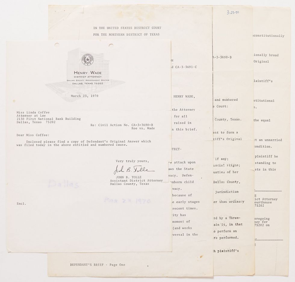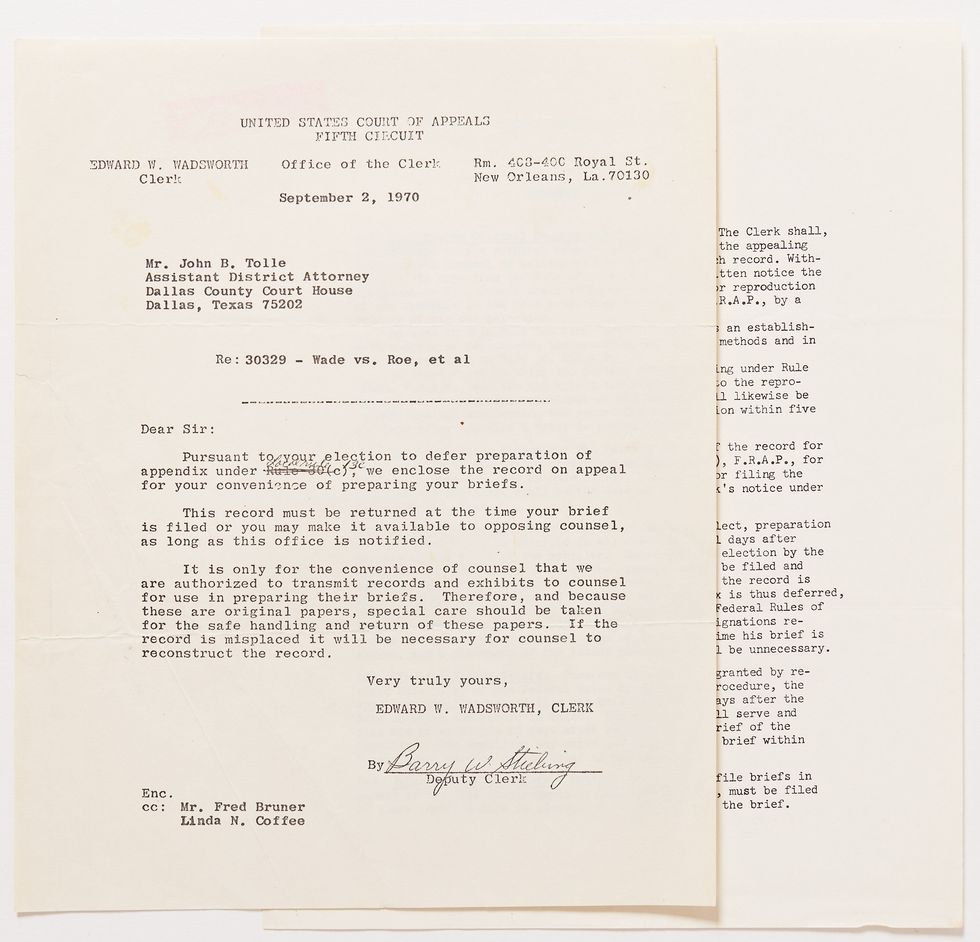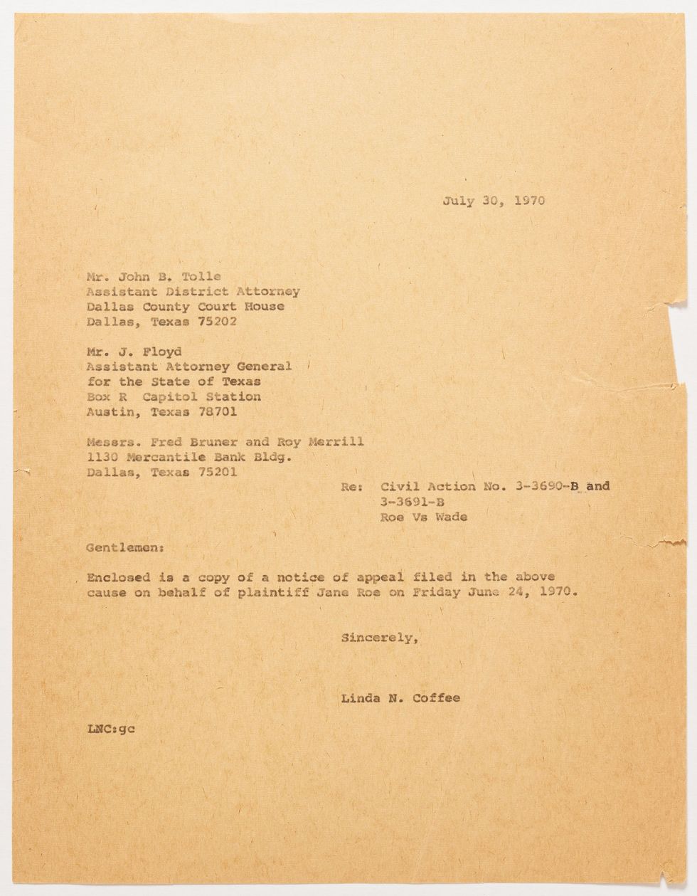 Linda Coffee, the Dallas lawyer who first launched the landmark Supreme Court case Roe v.Wade that legalized abortion nationwide, decided to sell all of the case documents, from the first papers filed at the Texas District Court to the quill pens given to her during oral arguments before the Supreme Court. She decided to auction off her archive to "inspire" the next generation of pro-choice activists in light of the Supreme Court's Dobbs ruling that overturned her landmark case. Coffee's partner Rebecca Hartt said: