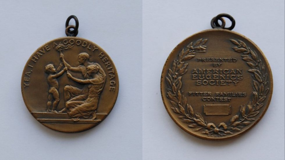 These "goodly heritage" medals were given to family members in the "fitter families contests" held by the American Eugenics Society in venues like the World Fair in Chicago.