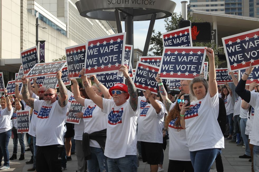 "No," he said, "we all have different opinions about Trump. Not really worried about that. Right now we just want to protest the new vaping laws."