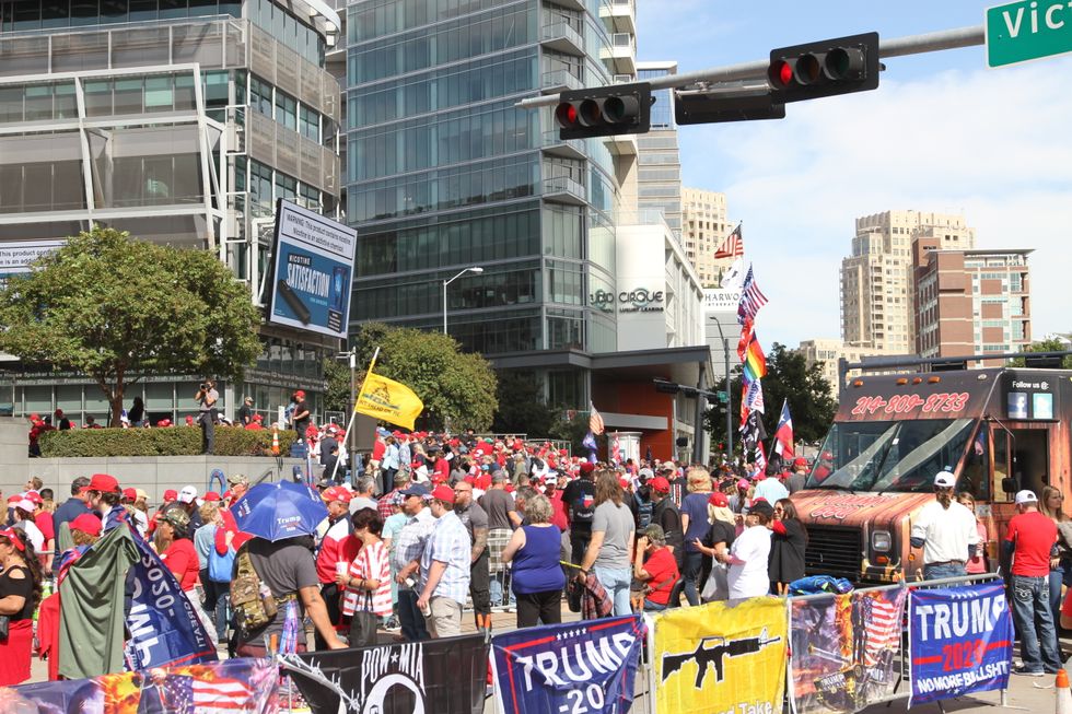 AntiFa has a decent presence in Dallas, and a reporter friend of mine interviewed a group of them outside the Trump rally. But there were hardly any there. A dozen or so. Which is nothing compared to the tens of thousands of Trump supporters, coiled all through downtown Dallas with its neon green outline.