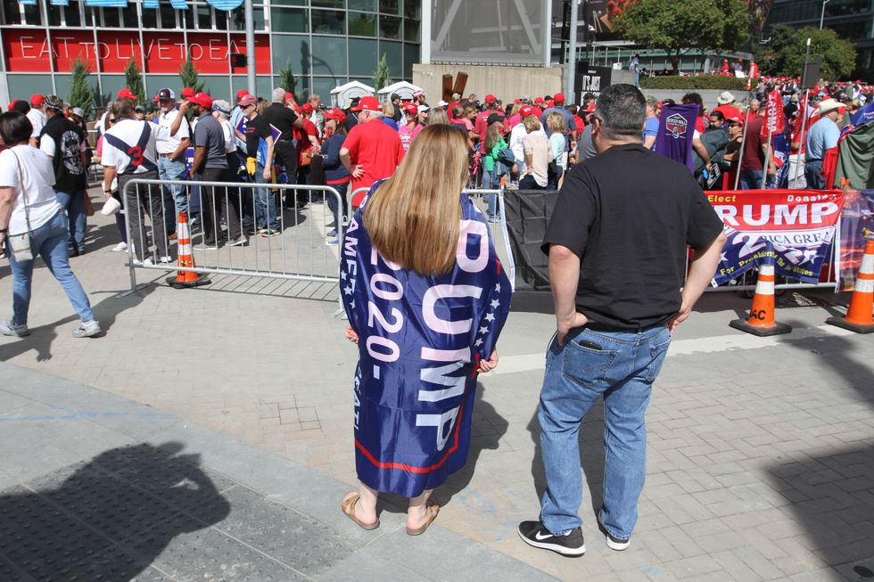 There were a dozen merchants selling Trump merchandise outside the arena, at least a dozen. One of them told me that they travel to all of Trump's rallies. From his cart, a flag billowed with the words "2020: Make Liberals Cry Again."