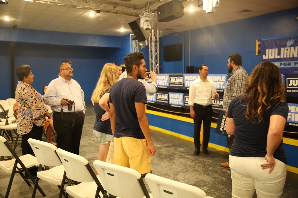 Eventually, he wandered up to Castro, whose campaign manager smiled and asked if we wanted a picture with "Julián." Without answering, my dad extended his hand toward Castro. "I'm from Ireland," he said. "And I want you to know that my heart aches for El Paso, for what happened in El Paso."