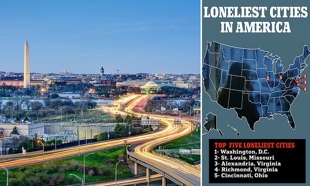 D.C.-commuter city Alexandria ranked third on the list of the U.S.'s top five loneliest cities, while Virginia's capital ranked fourth. St. Louis, Missouri came in second place, and Cincinnati, Ohio was number five. Meanwhile, Fontana, a town in California's San Bernadino Valley, is the least lonely city in America, with only 11 percent of its residents living alone.