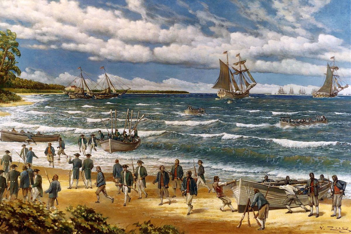 "New Providence Raid, March 1776" oil painting on canvas by V. Zveg, 1973