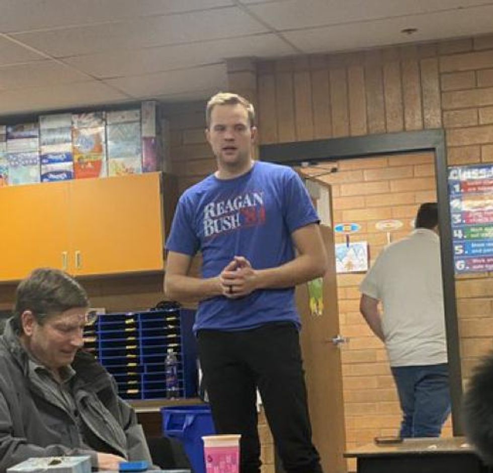 8:12 pm: All votes have been tallied and we have a new precinct chair. If his shirt has anything to do with it, I think we'll be in good hands with this BYU law student.