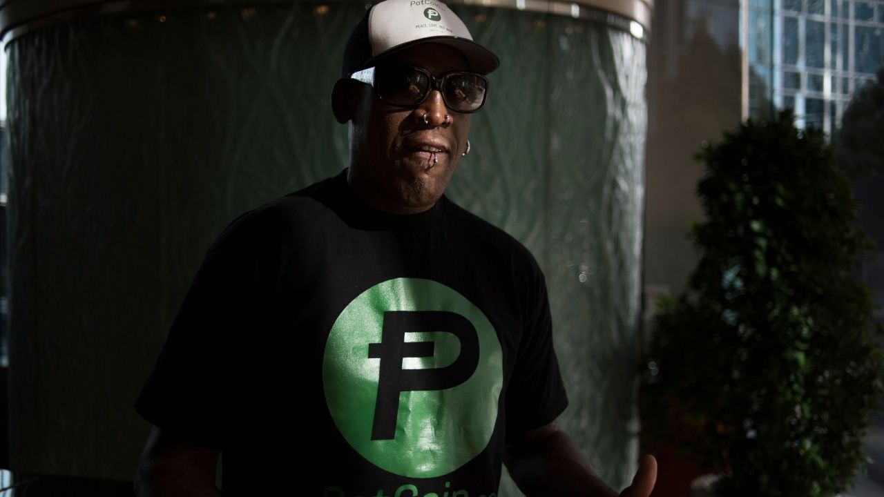It wouldn't be Rodman's first time to plug PotCoin. The cryptocurrency paid for his trip to North Korea last year where he wore a PotCoin t-shirt and cap, and promoted it on Twitter.