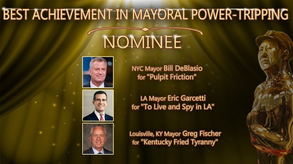 1) KY Mayor Greg Fischer prohibits Christians from holding "drive-in" services for Easter where worshippers would remain in cars