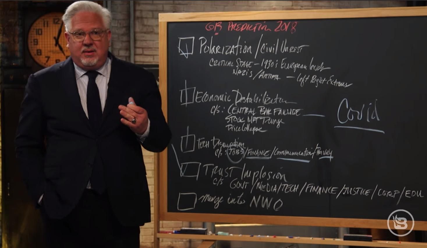 Back in 2018, Glenn Beck made a chalkboard listing the four things he believed we should watch for that would lead into a "new world order." Of the four points, Glenn said it was "trust implosion" that he worried about the most. Widespread mistrust of our institutions and leaders — including in government, media, Big Tech, finance, justice, corporation, and education — would be the final catalyst for radical transformation.